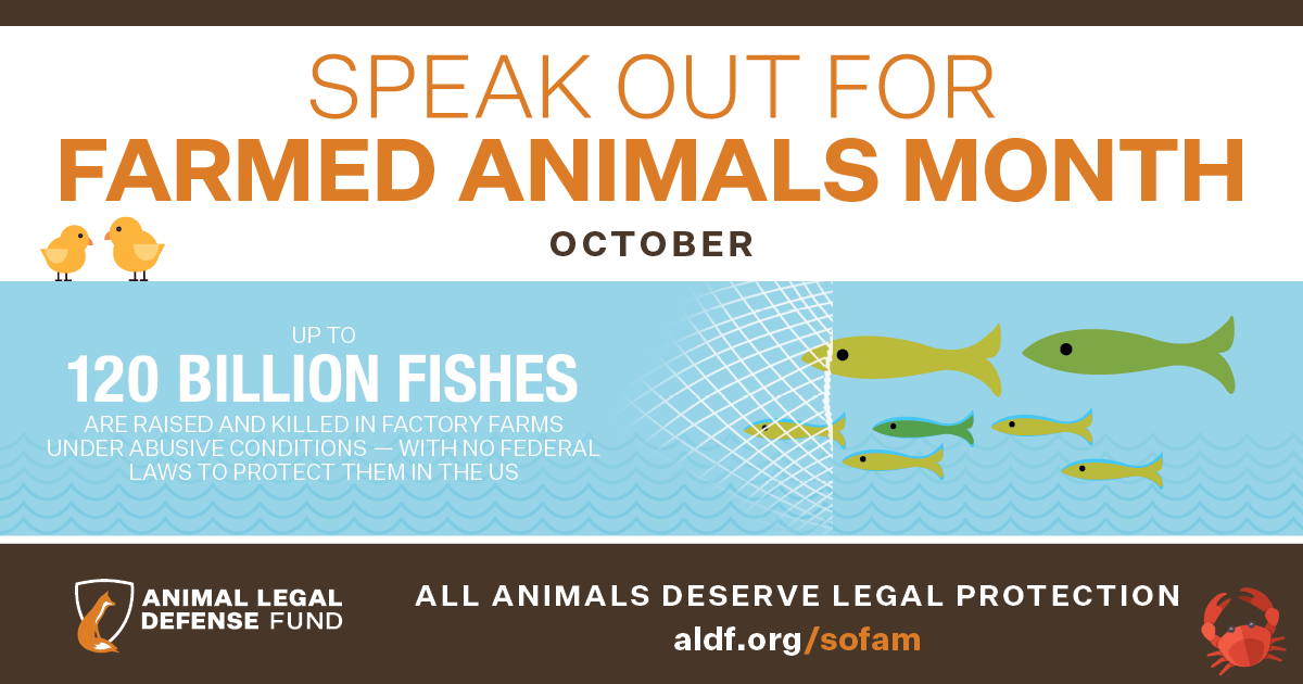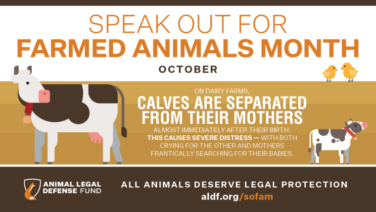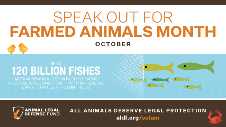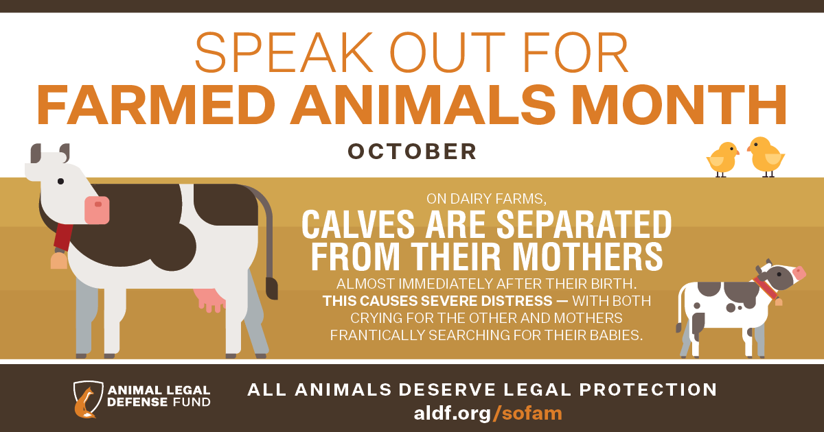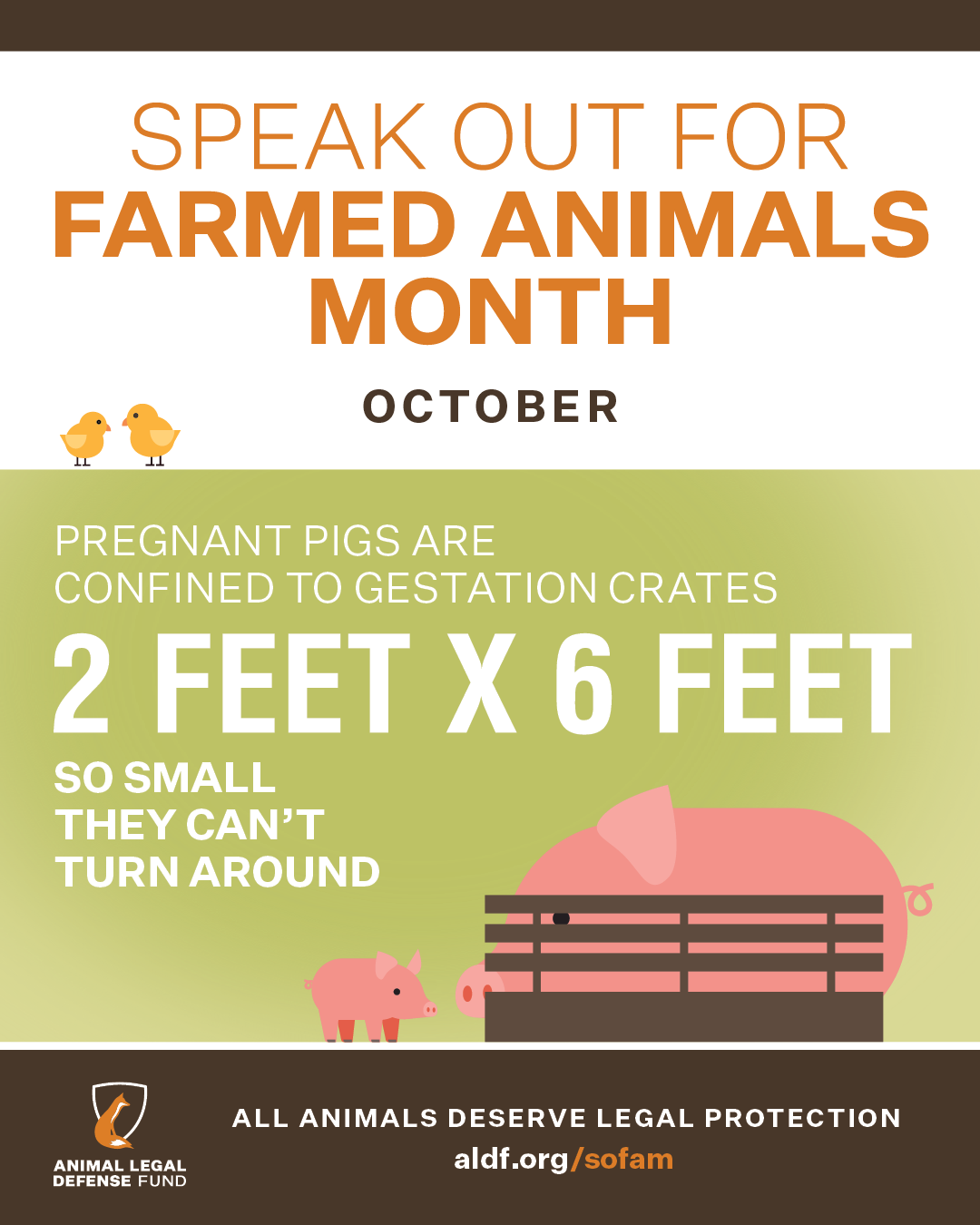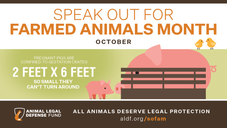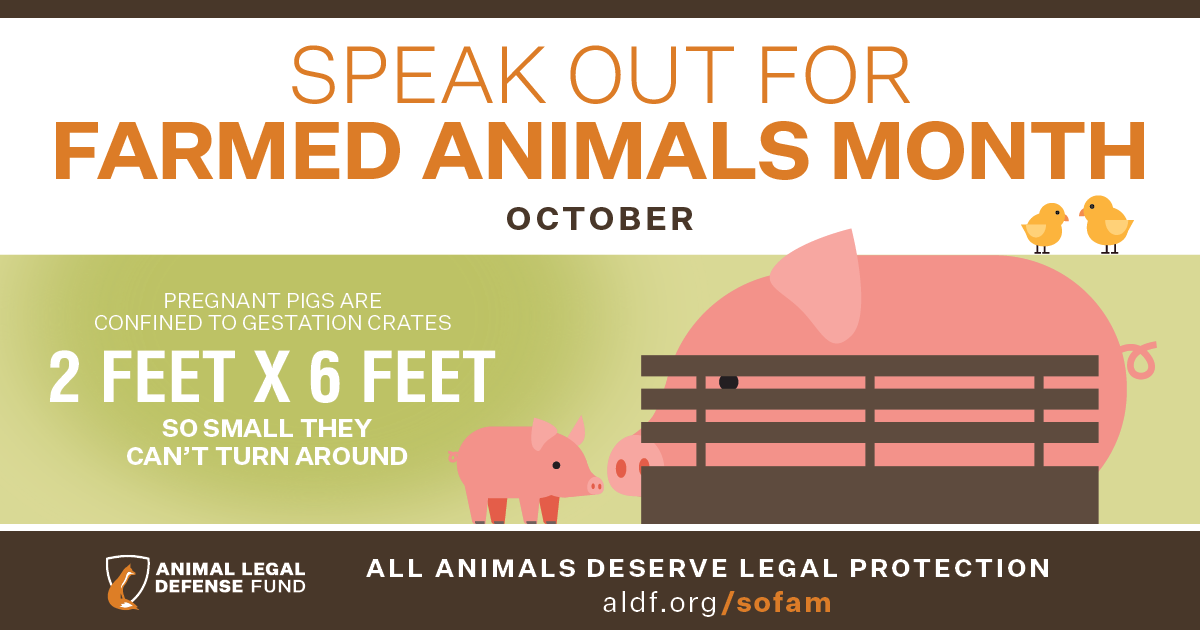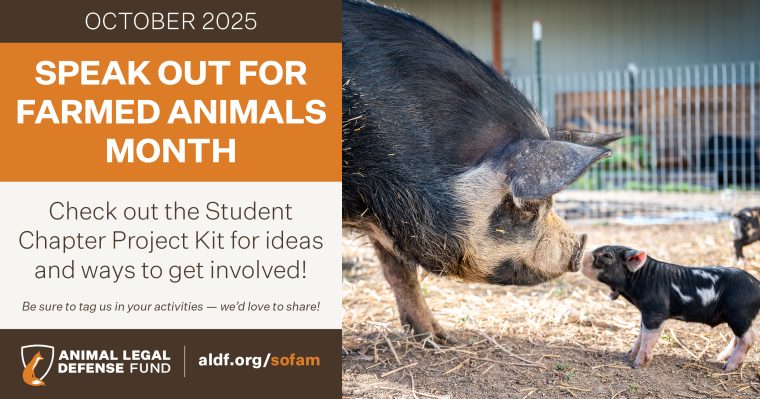 Animal Legal Defense Fund Student Chapters around the country celebrate October as Speak Out for Farmed Animals Month (SOFAM), a month of action dedicated to raising public awareness nationwide about the lack of meaningful laws that protect farmed animals from cruel treatment.