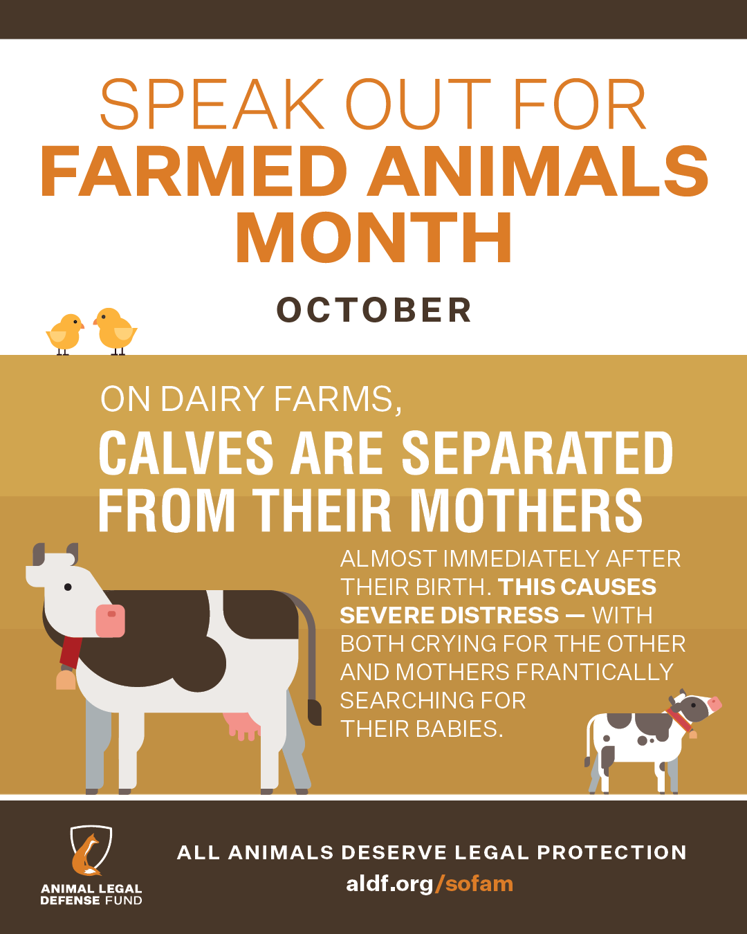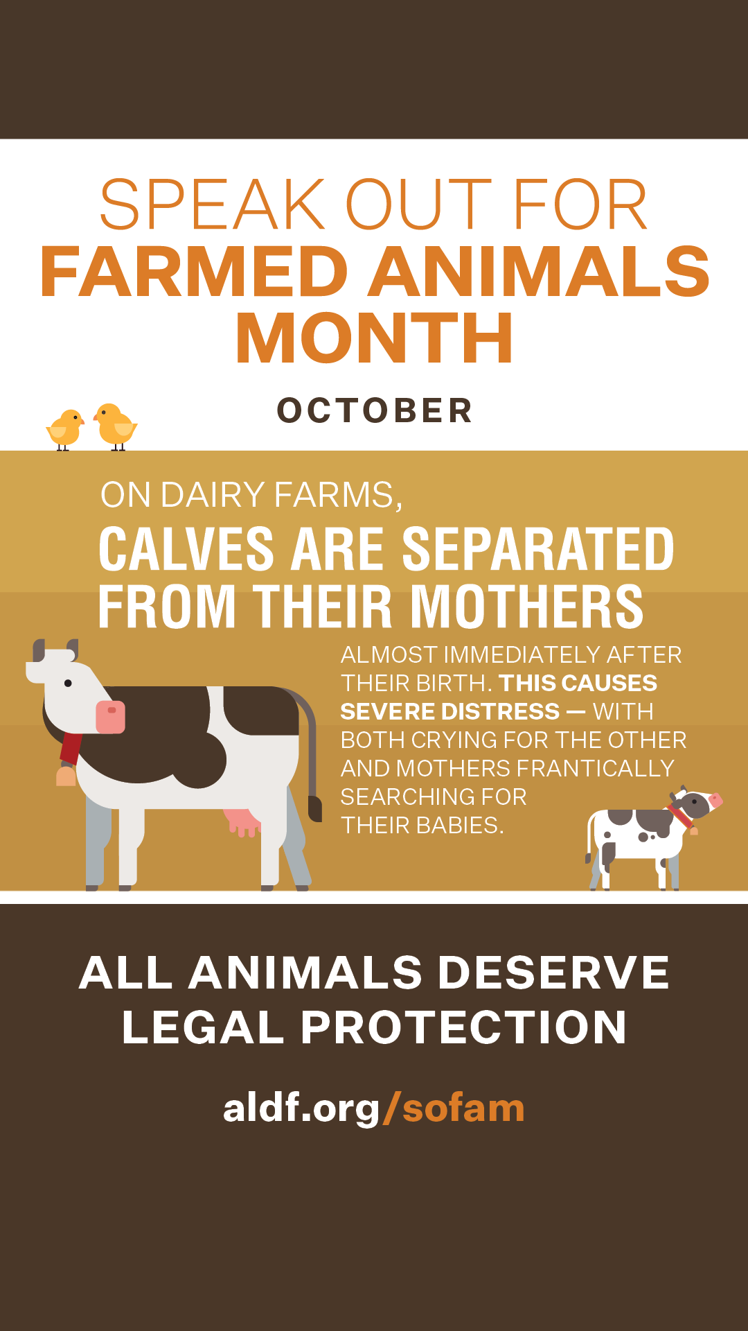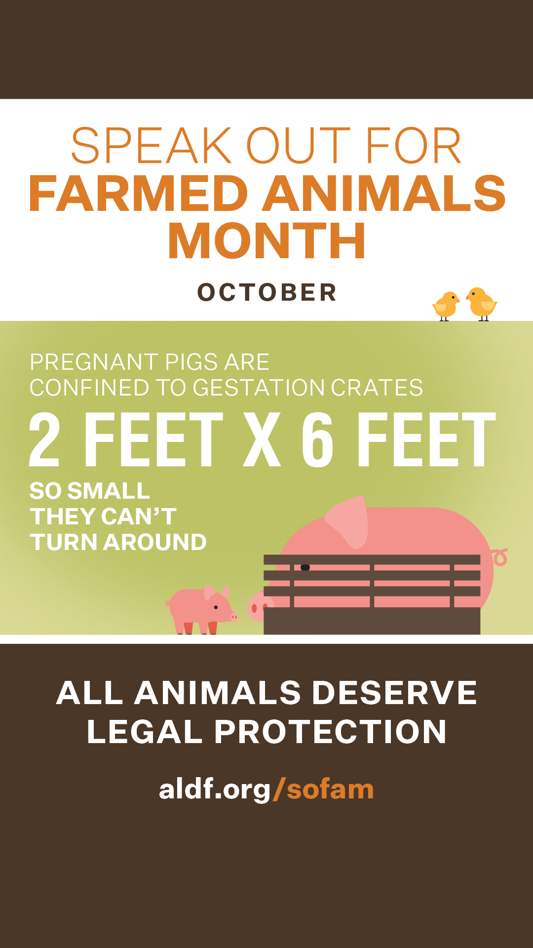 Create video content on a farmed animal topic. Use the hashtag #ALDFSOFAM for a chance to be featured on our Animal Legal Defense Fund social media accounts.