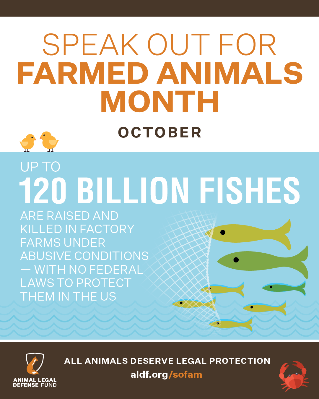 October 8 is World Octopus Day — the perfect time to table and gather petition signatures, host a film screening of My Octopus Teacher, or bring in a speaker to discuss issues surrounding aquaculture and emerging trends. Be sure to check out ALDF’s work on octopus farming bans and ways for you to get involved.