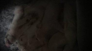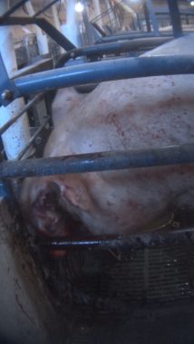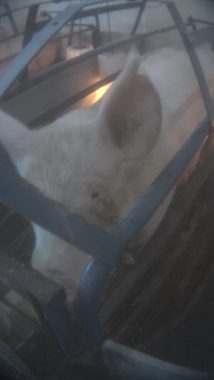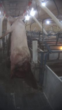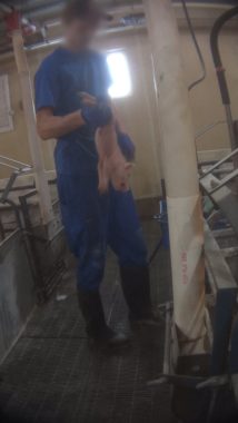 A piglet struggling to breathe after a failed attempt at euthanasia with carbon dioxide