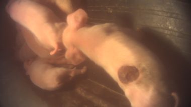 An undercover investigation conducted by Animal Outlook of a Holden Farms pig breeding facility in Utica, Minnesota exposed employees alleged criminal conduct, including feeding dead piglet intestines and bodily fluids blended into a ‘slurry’ with pig feces to mother pigs — a practice the animal agriculture industry calls “feedback.” The employees “did so without heating and testing this ‘feedback mixture’ as required by law.” This violates both federal and state anti-garbage feeding laws.