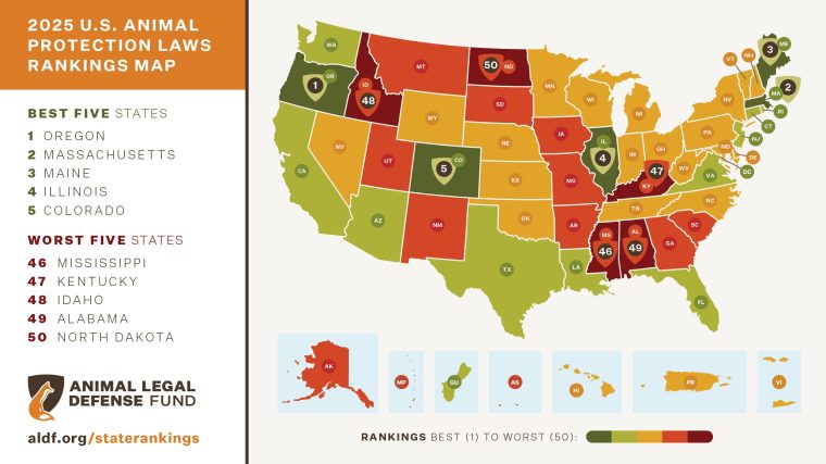 State Animal Protection Laws Ranked: Oregon is #1, North Dakota #50